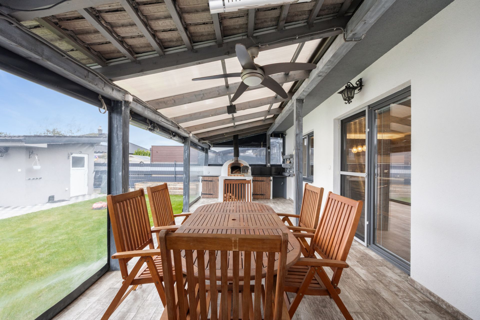 Veľkým benefitom nehnuteľnosti je priestranná krytá terasa, ktorú je možné využívať celoročne.