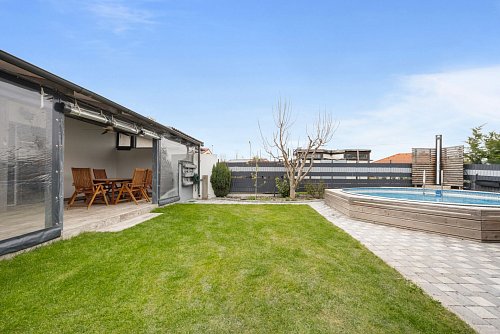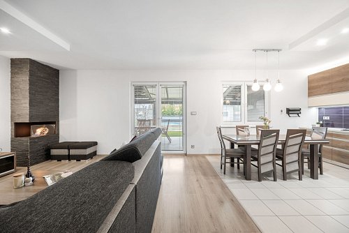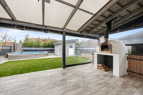 Moderný 4-izbový rodinný dom (dvojdom) s bazénom, krbom a celoročnou terasou – Zálesie, Lúčna ulica