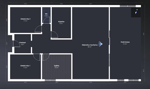 Podlahová plocha domu je 92,45 m2 + 27,26 m2 terasa.